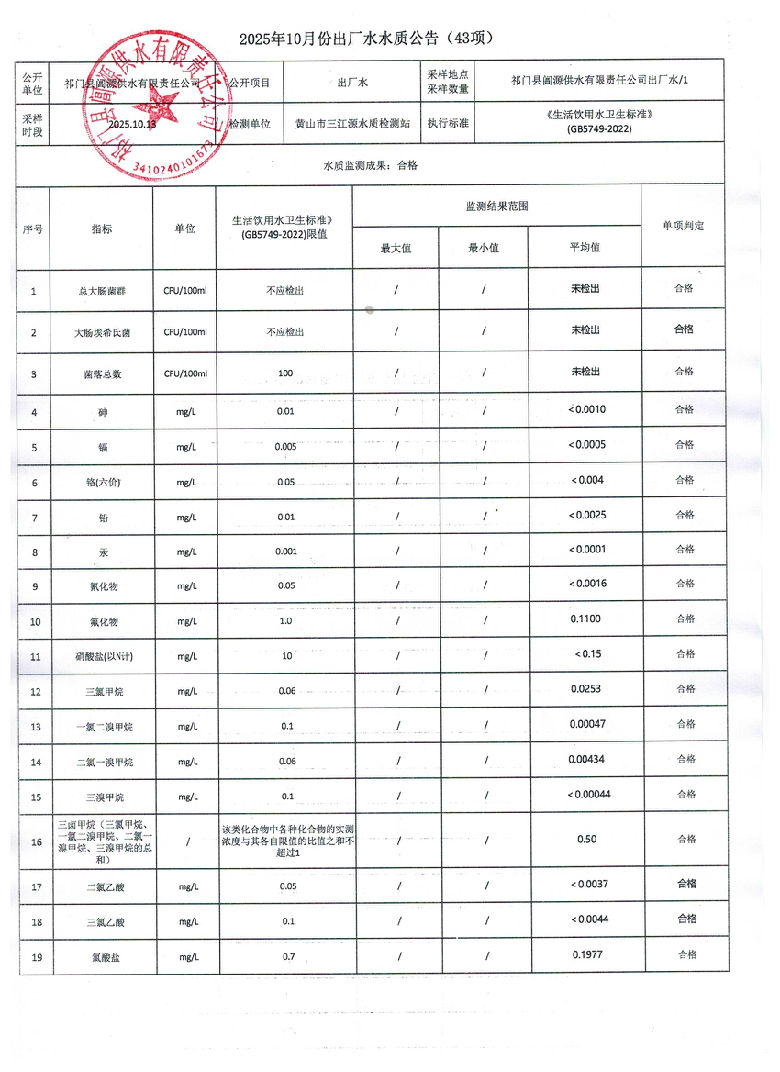 您當前位置:首頁 >2025年10月份出廠水水質信息公告(43項)